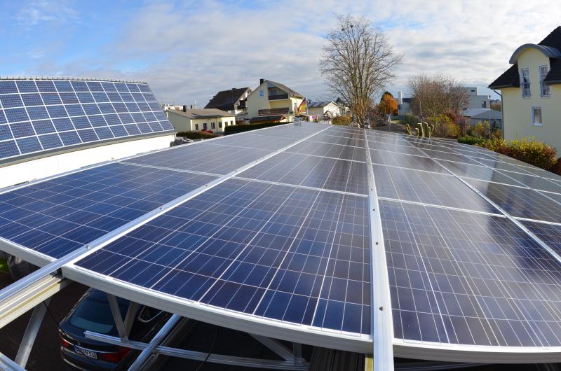 Auch auf dem Dach der Garagen an der Tennishalle Montabaur wurden die Montagearbeiten der Photovoltaikanlage abgeschlossen. Aufgeständert auf Modultischen wurden hier vom Montageteam der Schmidt Consulting & Vertrieb Gmbh & Co. KG (SCuV) 114 multikristalline Module mit einer Leistung von 28,5 kWp installiert.