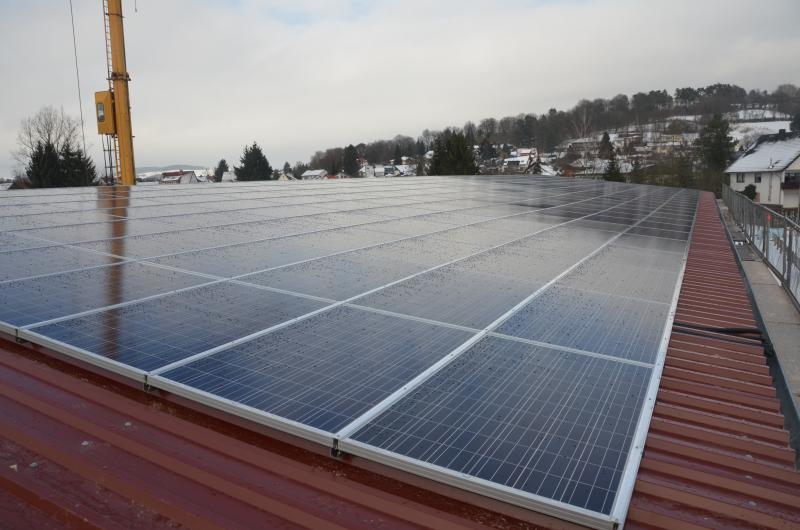 Das neu sanierte Trapezblechdach der Reithalle des Reit- und Fahrverein Gemünden e.V wurde mit einer Solarstromanlage ausgestattet. Die ScuV installierte für einen Investor eine PV-Anlage mit einer Leistung von 78,00 kWp. Die Anlage erzeugt rund 68.000 Kilowattstunden (kWh) Strom im Jahr und vermeidet somit einen CO²-Ausstoß von rund 60 Tonnen im Jahr.