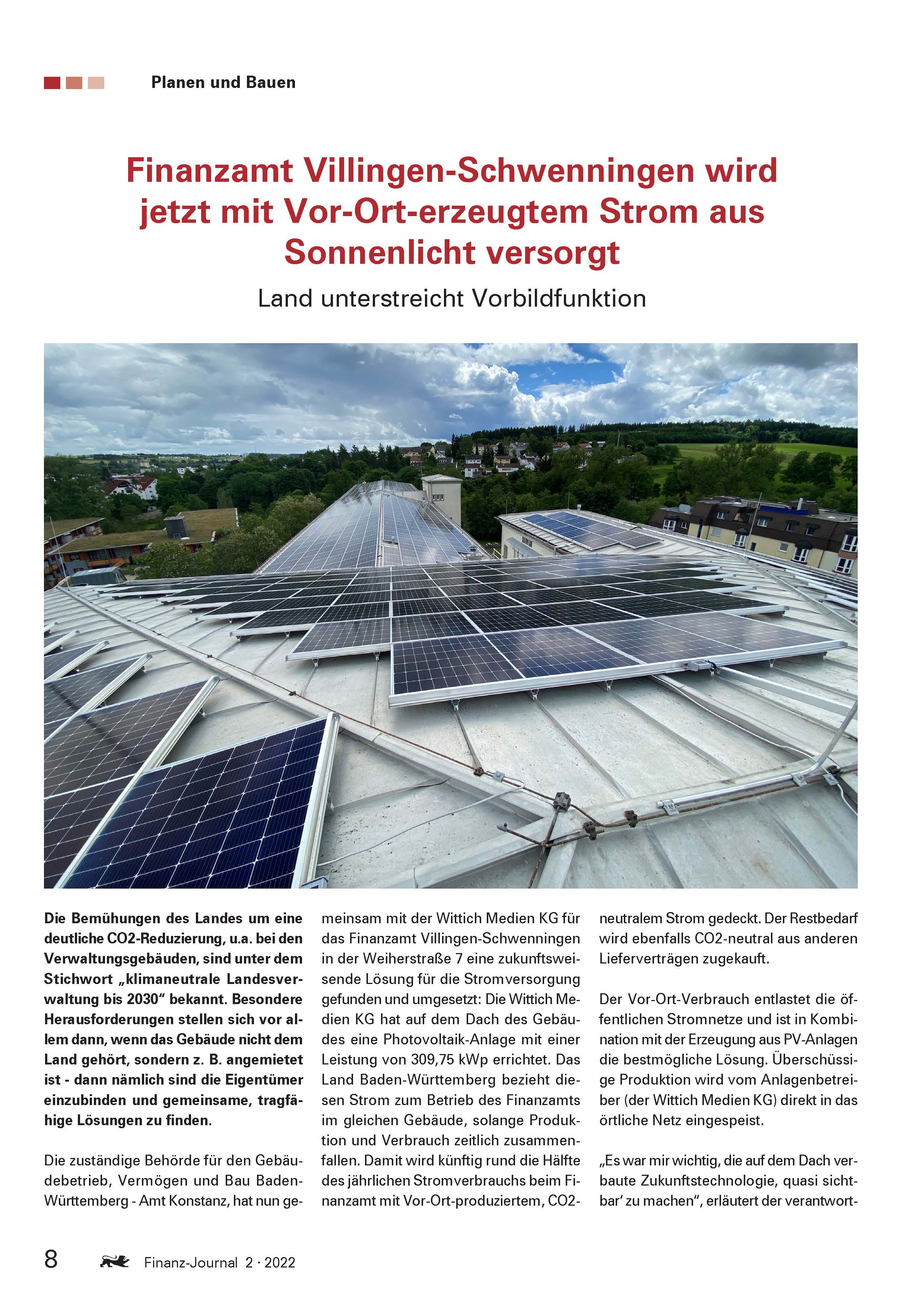 SCuV sorgt im Auftrag von Wittlich Medien im Finanzamt für Solarstrom